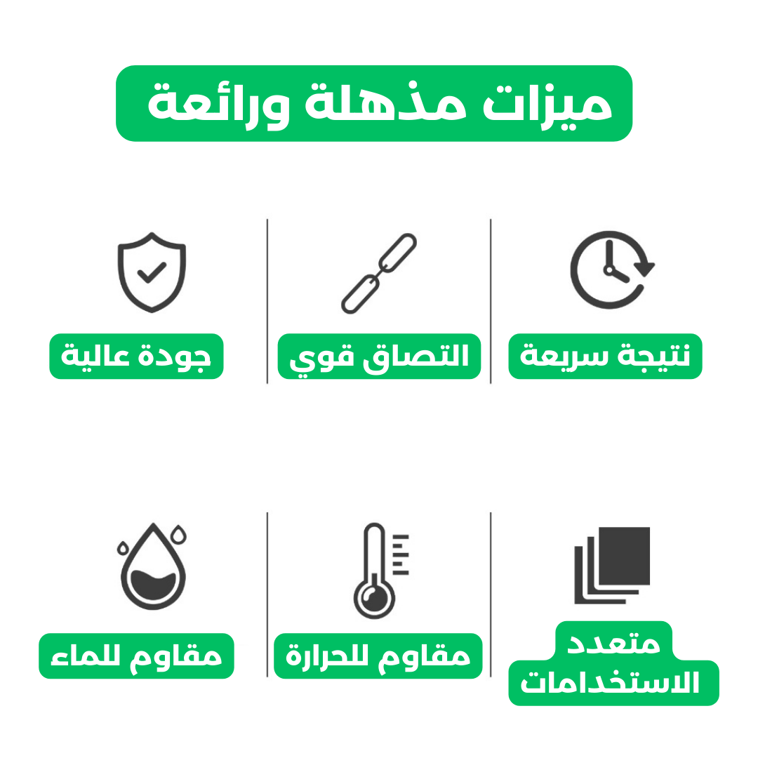 سواء كان زجاجًا، سيراميكًا، خشبًا، أو بلاستيكًا، أو حتى حديدا، هذا اللاصق مصمم ليوفر لك أقوى وأدق عملية لصق في العالم. لا شيء يضاهي قوته ومتانته، فهو الحل النهائي لكل إصلاحاتك ومشاكلك المنزلية