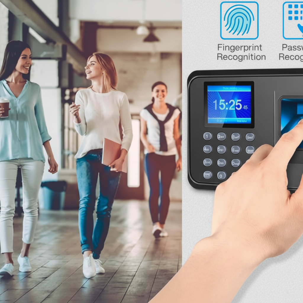 هو جهاز إلكتروني يُستخدم لتسجيل أوقات الحضور والانصراف للموظفين باستخدام بصمة الإصبع، بدل الطرق التقليدية مثل التوقيع أو الورق