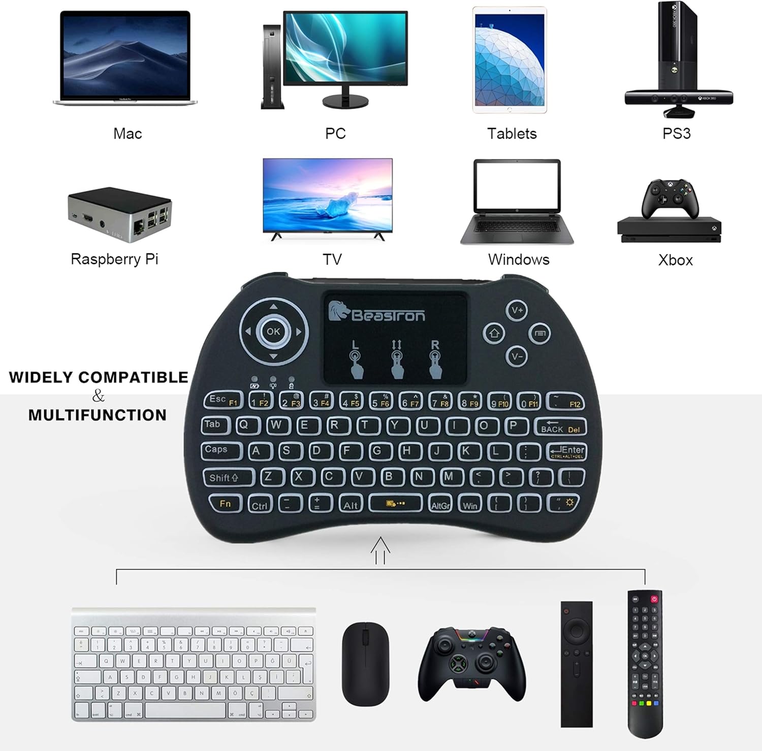 سواء كنت ترغب في تصفح الإنترنت على حاسوبك، أو التنقل بين تطبيقات التلفاز الذكي، أو تشغيل ملفات الوسائط على جهاز ، فإن لوحة المفاتيح اللاسلكية الصغيرة الحجم، المدمجة بلوحة لمس ذكية، مصممة لتمنحك تجربة تحكم متكاملة لجميع أجهزتك الإلكترونية بسهولة تامة